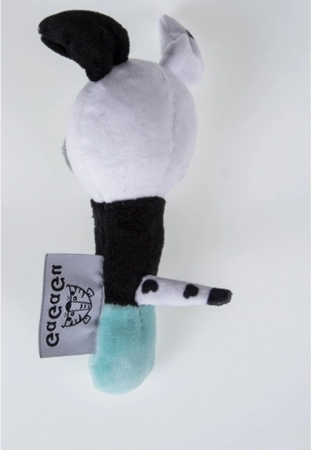 Ropotuljček je izdelan iz kakovostnih, mehkih materialov, je lahek in udoben za majhne otroške rokice. Zahvaljujoč izstopajočim elementom – ušeskom in repku – se otrok uči prijemati ter razvija koordinacijo rok in prstov. Kompaktna velikost je idealna za sprehode in potovanja.