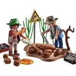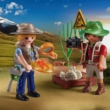 Odkrijte starodavne skrivnosti z vznemirljivim kompletom PLAYMOBIL izkopavanja! Skrijte fosile, kot so amoniti, trilobiti in dinozavrova jajca, v skale in jih znova odkrijte s pomočjo realističnih orodij. S čopiči, kladivcem in povečevalnim steklom skrbno analizirajte svoje najdbe in jih varno shranite v leseno skrinjo. S priloženo kamero lahko paleontologi dokumentirajo vsako vznemirljivo odkritje. Podrobno zasnovana osnovna plošča z grmovjem in vejami vabi k neskončnemu domišljijskemu raziskovanju. S skrbno obliko PLAYMOBIL bo vsak izkop postal avantura v preteklost!