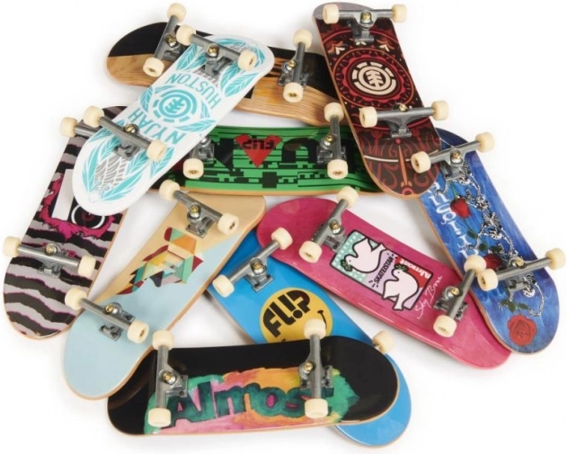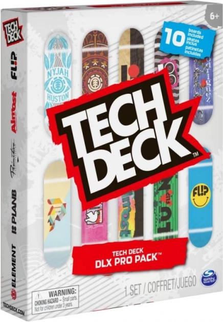 Tech Deck set 10 mini skejtbordov prinaša možnost upravljanja majhnih skejtov s prsti kot profesionalec. Vsaka od desetih desk je popolnoma sestavljena, kar omogoca takojšnjo zabavo in treniranje fingerboard trikov. Za otroke od 6 let.