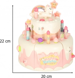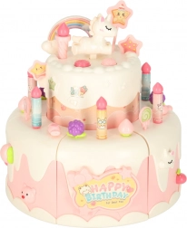 Interaktivna rojstnodnevna torta, ki otroke preseneti z glasbo in lučkami. Vključuje bogate dodatke in okraske, idealno za ustvarjalno igro.