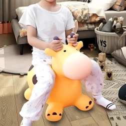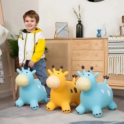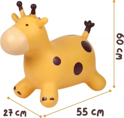 Žirafa je izdelana iz varnih in trpežnih materialov, zasnovana za stabilnost in udobje, kar spodbuja k aktivnemu gibanju ter omogoča ure veselega skakanja tako doma kot na prostem.