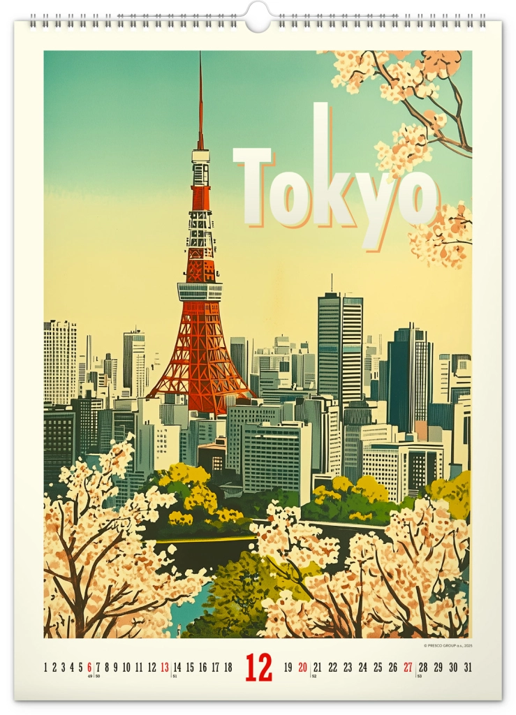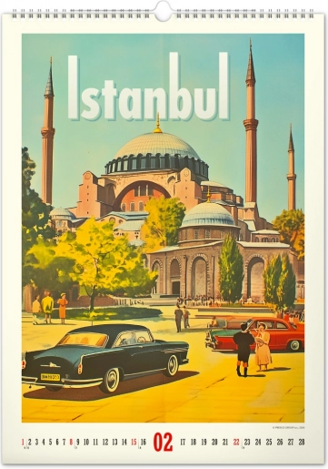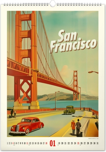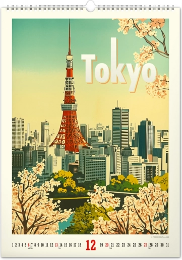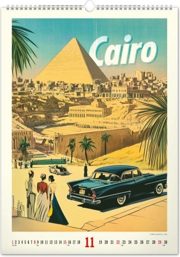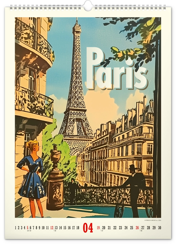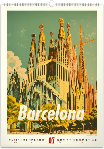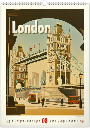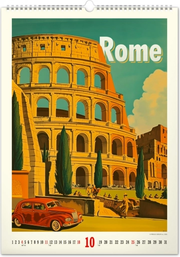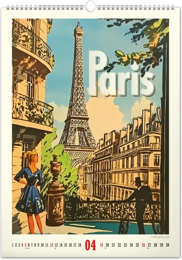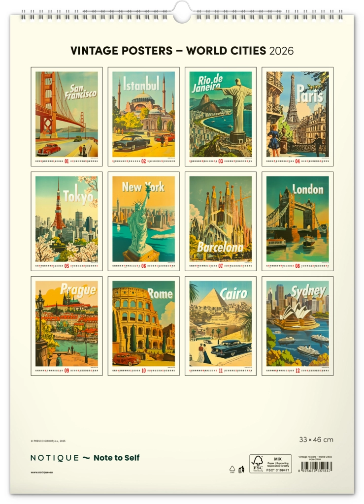 Odkrijte nostalgijo preteklih desetletij s stenskim koledarjem, polnim vintage plakatov svetovnih mest, ki bodo oživili vzdušje vašega doma.