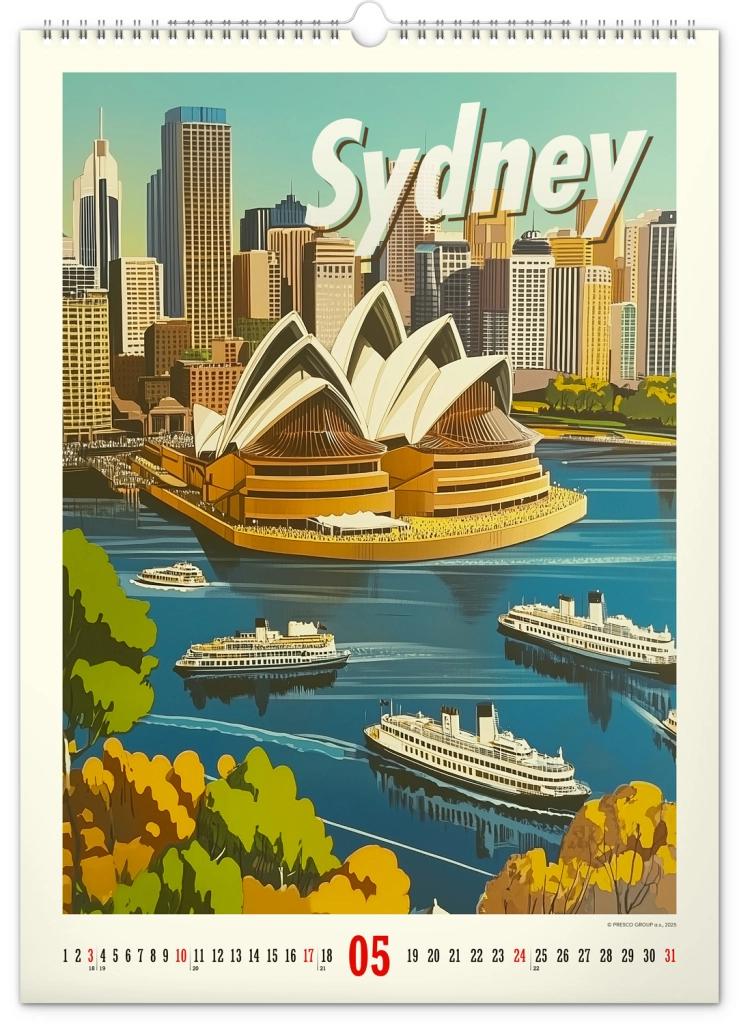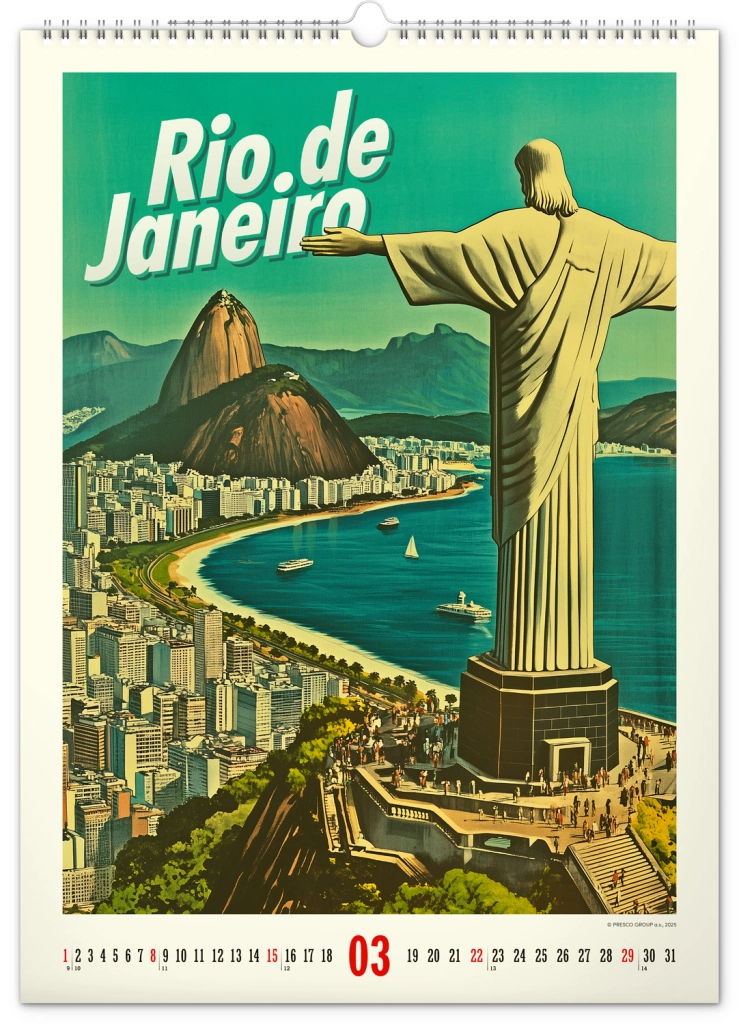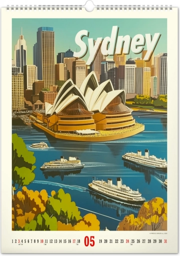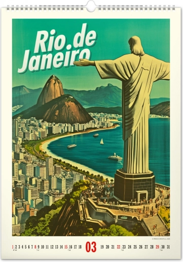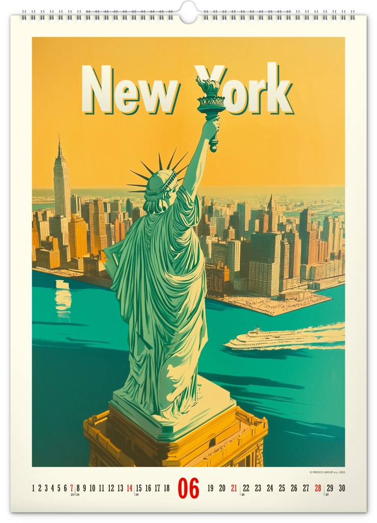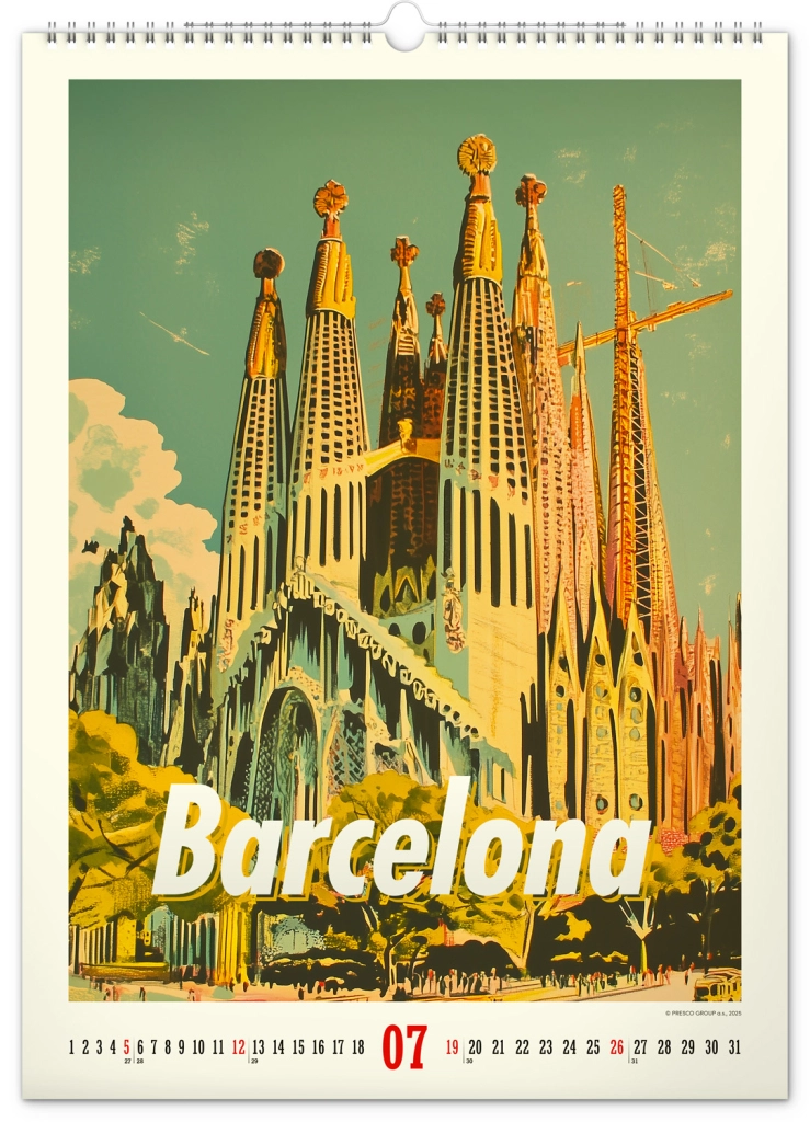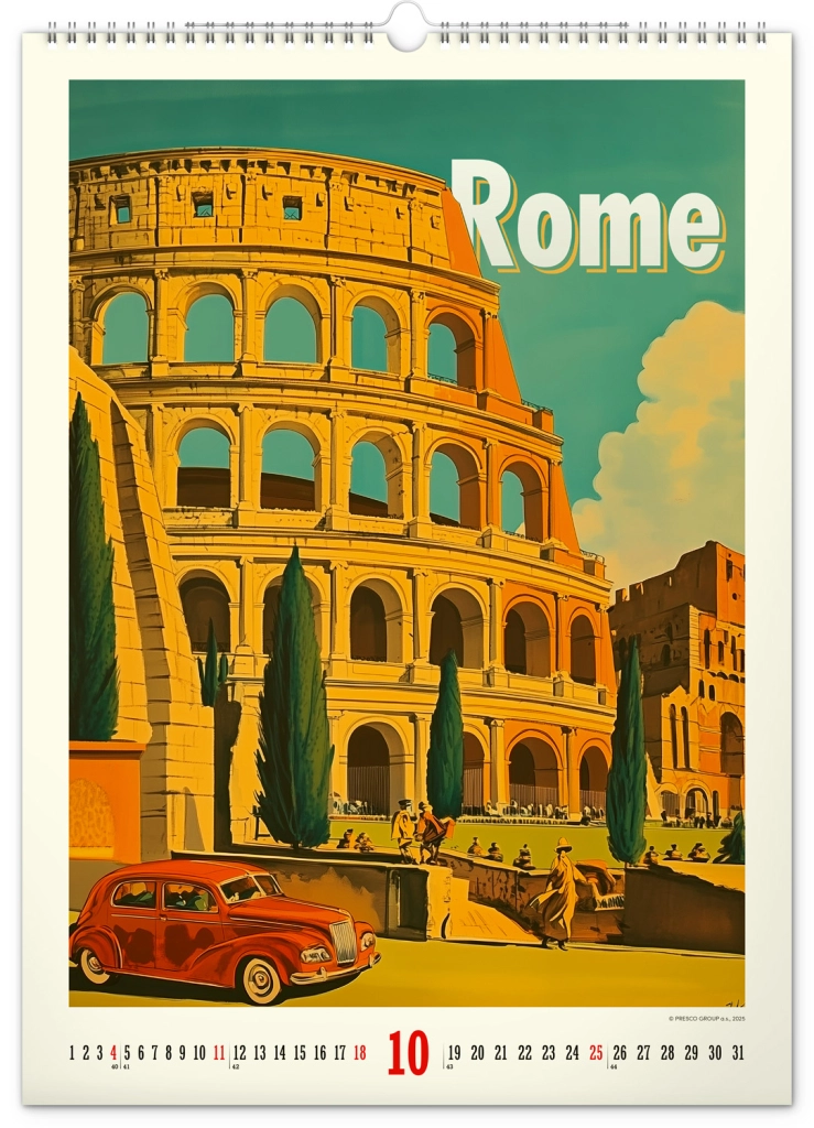 Odkrijte nostalgijo preteklih desetletij s stenskim koledarjem, polnim vintage plakatov svetovnih mest, ki bodo oživili vzdušje vašega doma.
