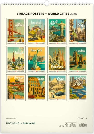Stenski koledar Vintage plakati – svetovna mesta 2026
