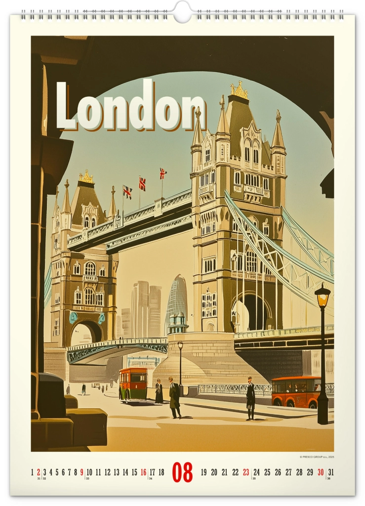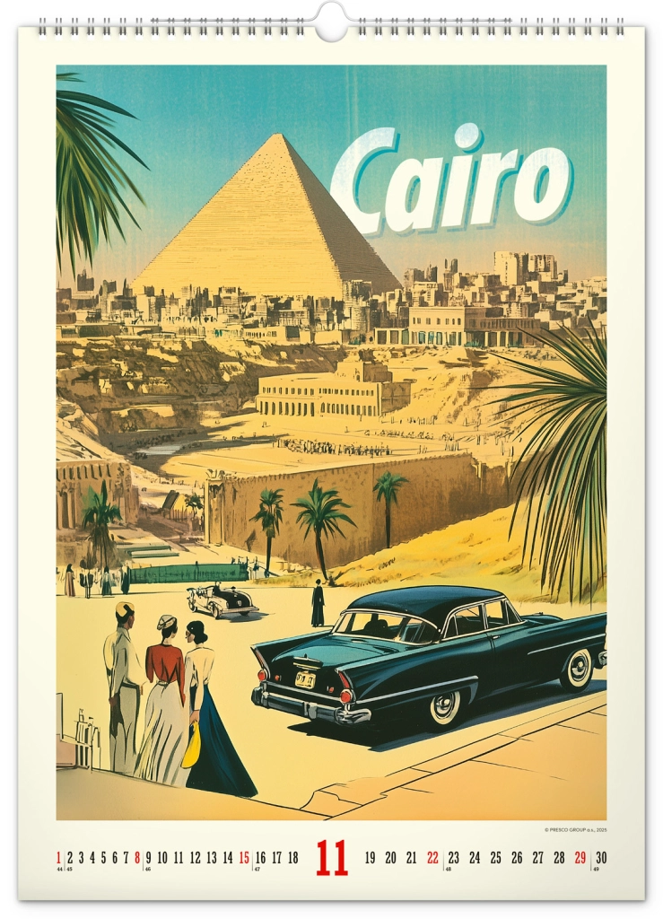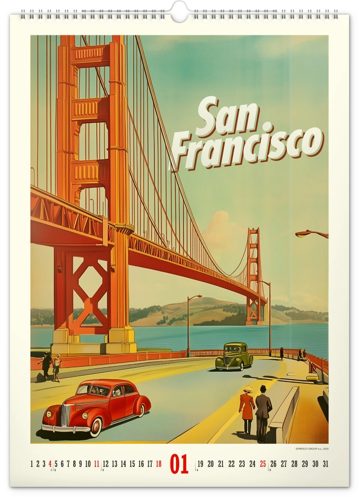 Potopite se v čarobnost zgodovinskih delov mest s koledarjem, zasnovanim tako, da zavzame in očara vse ljubitelje zgodovine in estetike. Vsak mesec razkriva edinstven plakat, ki gledalca popelje v zlato obdobje prejšnjega stoletja: