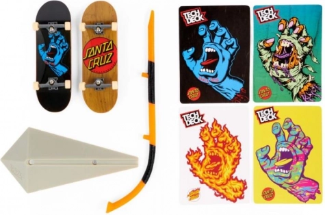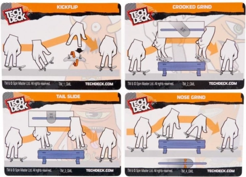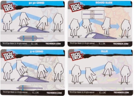 - 2 sestavljena fingerboarda, 1 ovira, 4 karte s triki