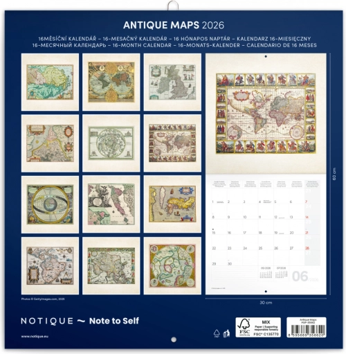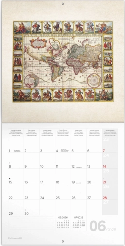 Zapisovalni koledar Stari zemljevidi 2026 ponuja dvanajst ilustracij starih zemljevidov in je idealen spremljevalec za načrtovanje. Ta praktični koledar je izdelan z mislijo na ekologijo, del zbirke Plastic Free.