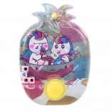Ta vodna igra z motivom čarobnih enorogov je klasična igrača, ki že mnogo let prinaša veselje otrokom različnih starosti. Zaradi svojih kompaktnih mer in preprostega mehanizma je idealna za na pot, v šolo ali na sprehod. Igra temelji na pritisku gumba, ki spravi v gibanje barvite obročke ali kroglice v prozorni posodici, napolnjeni s tekočino. Cilj je te elemente namestiti na zatiče ali na določena mesta.