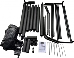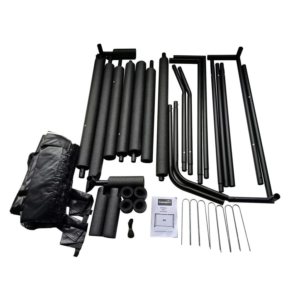 Črna prevleka za konstrukcijo ščiti okvir in podaljšuje njegovo življenjsko dobo. Vrata so lahka in enostavno prenosljiva, montaža ni zahtevna glede orodja.