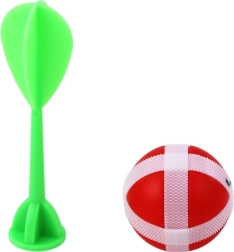 Del kompleta je temna tarča s premerom 28 cm, ena puščica in ena žogica, obe s konico na suhi zadrgi. Tarča ima jasno vidno oštevilčenje in barvna območja, ki ne le olajšujejo učenje in izboljšujejo reflekse, ampak se tudi dobro obnesejo pri igranju v notranjih in zunanjih prostorih.