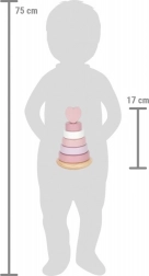 Ta lesen stolp za zlaganje v nežnih pastelnih odtenkih rožnate z naravnimi elementi ponuja razvoj fine motorike in učenje barvnega razlikovanja. Stolp s koncem v obliki srca zagotavlja zabavno in varno igro za otroke.