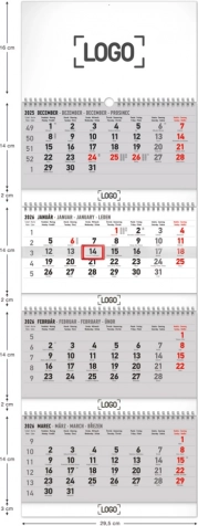 Praktičen štirimesečni koledar z merami 29,5 × 84,5 cm lahko zaradi dvojne spirale preprosto zložite na velikost A4. Omogoča hkraten pregled štirih mesecev.
