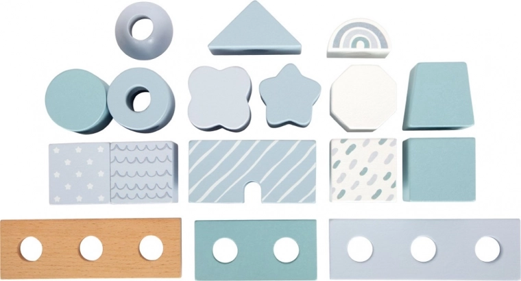 Vsebuje 18 kosov v različnih oblikah in vzorcih, ki spodbujajo otroško ustvarjalnost pri igri.
