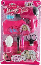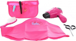 Stilski frizerski set za male salonske zvezde ponuja vse potrebno za kreativne pričeske. V kompletu je funkcionalni sušilnik na baterijo, škarje, krtača, sponke, ščipalke, ogrinjalo za striženje in pas z žepi. Idealna igrača za razvoj domišljije in fine motorike otrok od 3 let. Varni plastični dodatki, enostavna uporaba in kompaktne mere za igro doma in na poti.