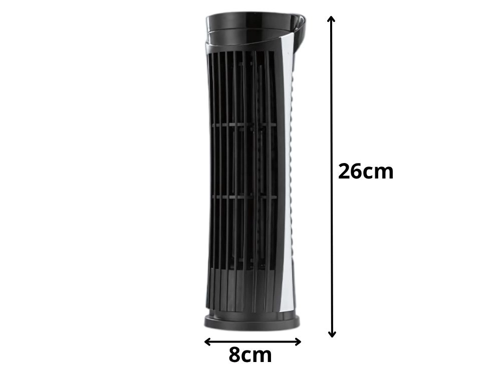 Uživajte v svežem vetriču na pisalni mizi ali nočni omarici. Ta mini namizni stolpni ventilator izstopa z vitkim dizajnom, nizko hrupnostjo in preprostim upravljanjem z enim gumbom. Zahvaljujoč USB napajanju ga enostavno priključite na prenosnik, powerbank ali omrežni polnilec.