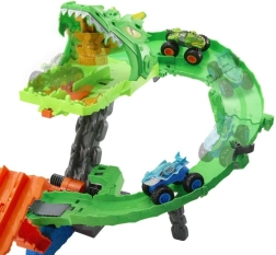 Ko je zmaj izločen, izstreli avto v njegov gobec in osvoji trofejo! Set je združljiv z deli Speed Snap za razširitev prog in deluje z večino vozil Hot Wheels v merilu 1:64. Idealno za otroke od 4 let – za poustvarjanje prizorov z YouTuba in lastnih zgodb.