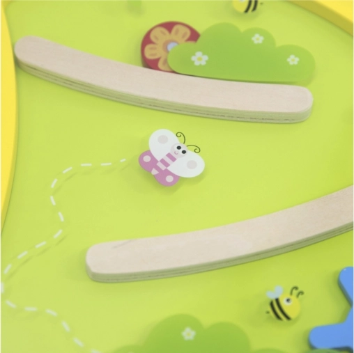 Zabavna in varna stenska igra za najmlajše razvija fino motoriko, logično razmišljanje ter koordinacijo roka–oko. Ponuja magnetni labirint, blodnjak in zobnike v enem igrivem panelu. Idealna za otroške sobe, vrtce in igralnice.