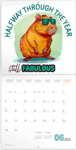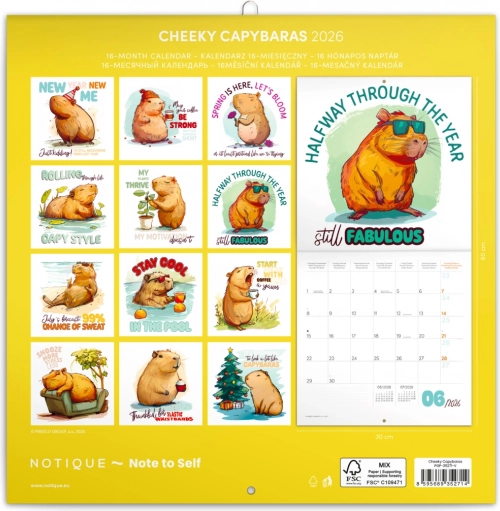 Naš beležniški koledar Nagajive kapibare 2026 je več kot le običajen koledar. Vsak mesec prinaša novo ilustracijo kapibar, ki vas bo nasmejala in razveselila. Zahvaljujoč dovolj velikemu prostoru za vaše zapiske in načrte je koledar ne le estetski, temveč tudi praktičen dodatek za vaš dom ali pisarno. Ponuja: