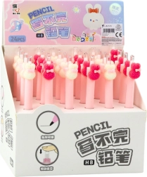 Svinčnik je dolg 15 cm in je izdelan iz lahke, a trpežne plastike, ki zagotavlja udobno uporabo. Samodejni mehanizem omogoča iztegovanje mina brez potrebe po šiljenju, kar je zelo praktično tako v šoli kot doma ali pri ustvarjalnih dejavnostih. Prisrčna dekoracija v obliki zajčka pritegne pozornost in je lahko privlačen dodatek peresnici ali darilo.