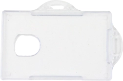 Etui je opremljen z univerzalnimi odprtinami za pritrditev, zato ga lahko preprosto obesite na vrvico, verižico, sponko ali pritrdite na delovno oblačilo. Trda plastika zagotavlja trajnost in estetski videz tudi pri intenzivni uporabi. Izdelek je primeren za vsakodnevno uporabo v službi, na dogodkih ali usposabljanjih.
