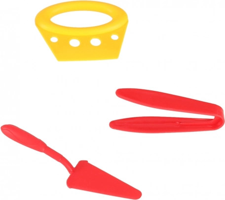 - Praktična orodja za delo s peskom, vključno z lopatko in kleščami