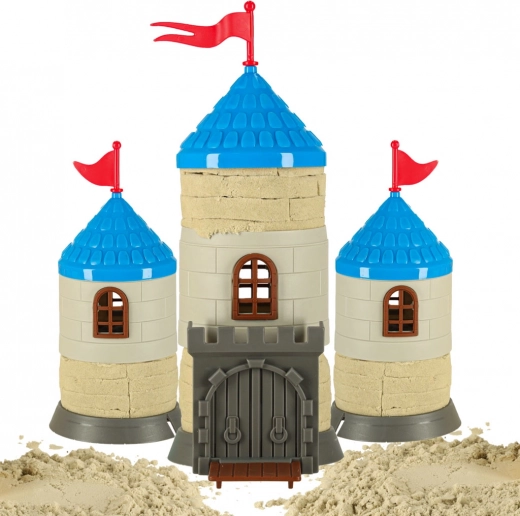 Ustvarjalni peščeni komplet za otroke s komponentami gradu in orodji. Spodbuja ustvarjalnost že od 3. leta dalje.