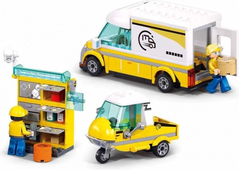 Sluban Metropolis dostavna služba: kakovosten ABS plast, združljiv z Lego, 255 koščkov, 3 figurice, za otroke od 6 let.