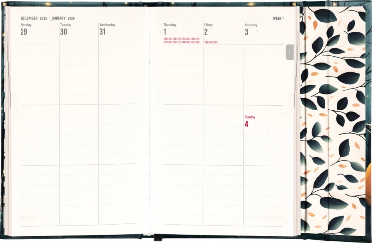 Moderen in eleganten Notique Tedenski Magnetni Dnevnik Lisica 2026 ponuja stolpčno postavitev posameznih tednov z dovolj prostora za vsakodnevne zapiske. Ta dnevnik je odlična izbira za načrtovanje službenih in osebnih aktivnosti.