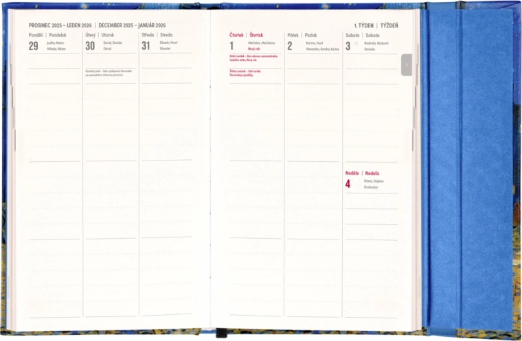 Tedenski dnevnik Notique, navdihnjen z delom Vincenta van Gogha, je odlična izbira za vse, ki cenijo eleganco in praktičnost. Dnevnik ima trdno magnetno zapiranje, ki zagotavlja varno zaprtje in zaščito vsebine. Zaradi svoje razporeditve se zlahka prilagodi vašim potrebam ter omogoča učinkovito načrtovanje in organizacijo časa.