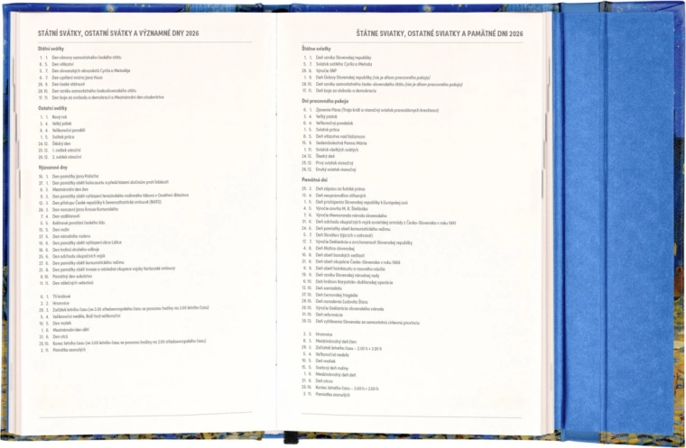 - Seznam čeških in slovaških praznikov ter godov, da boste vedno imeli pregled nad pomembnimi dnevi.
