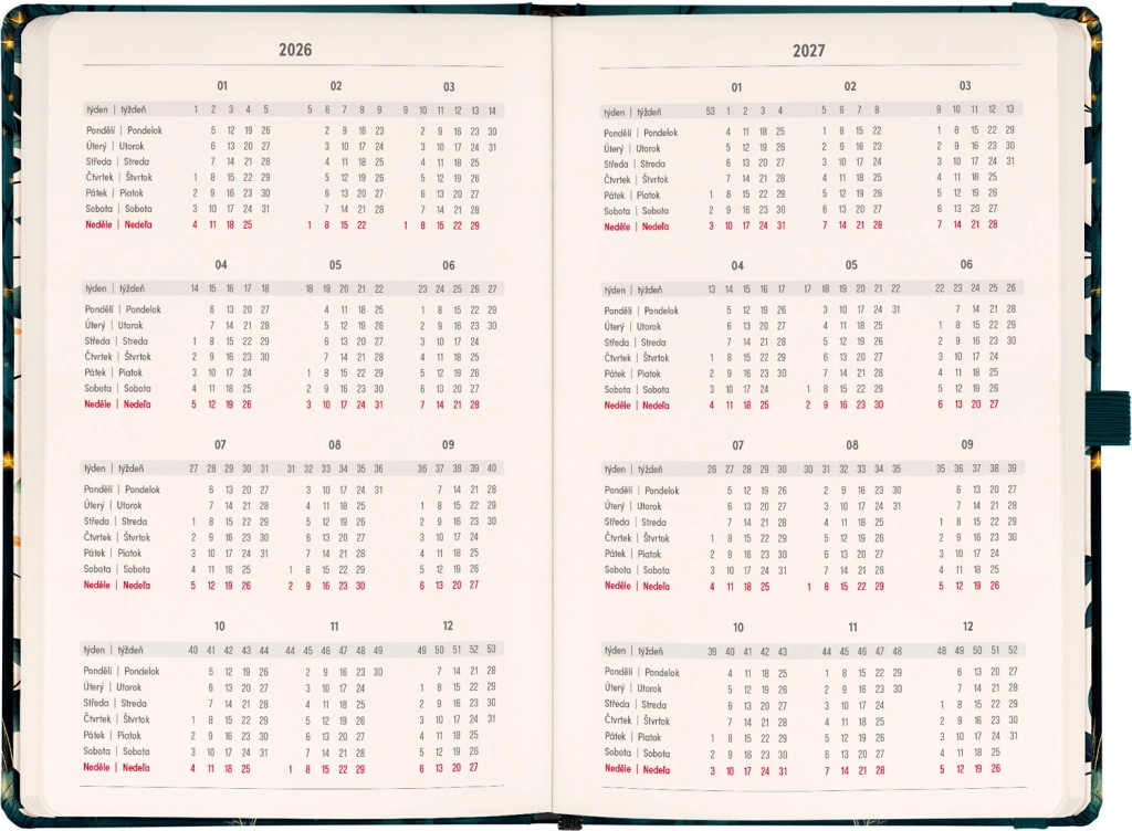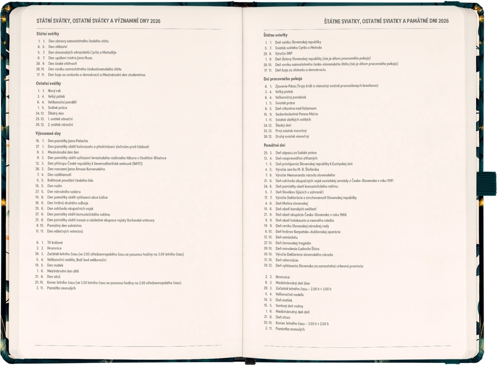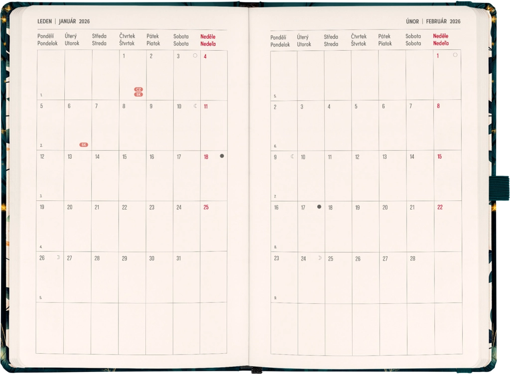 Uživajte v idealni povezavi dnevnika in zvezka s PLANBOOK. Prva polovica vsebuje štirinajstdnevni horizontalni koledar z češkimi in slovaškimi prazniki, ki vam pomaga skrbno načrtovati vsak dan. Druga polovica, ki jo sestavljajo črtane strani, je popolna za zapis vseh vaših zapiskov, misli ali projektov.