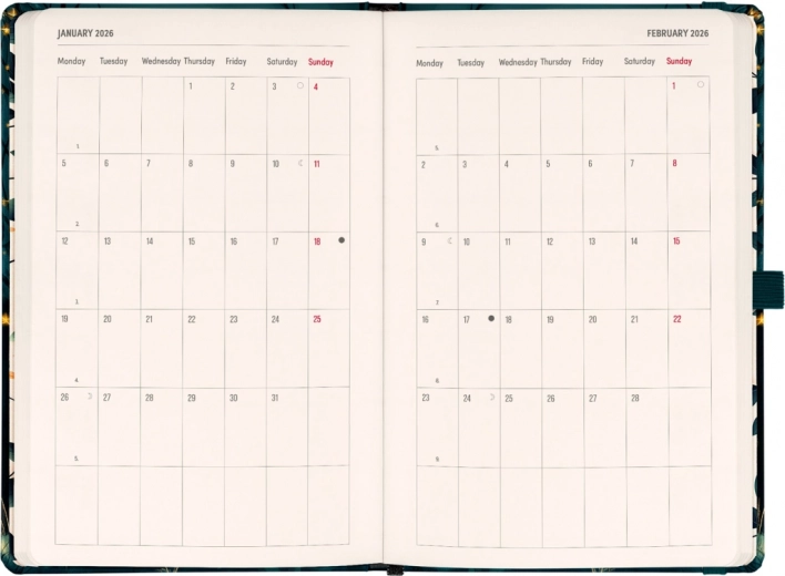 Notique Planbook ponuja popolno kombinacijo dnevnika in beležnice. Vsebuje štirinajstdnevni horizontalni koledar in črtaste strani za zapiske, idealno za načrtovanje in ustvarjalno zapisovanje.
