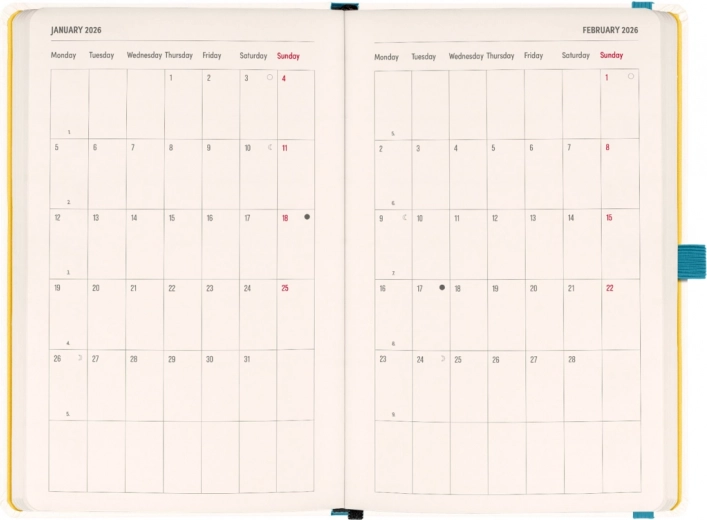 NOTIQUE Planbook Herbarij 2026 je popolna združitev dnevnika in beležnice v enem. Prva polovica ponuja štirinajstdnevni horizontalni koledar z mednarodnimi prazniki, kar omogoča učinkovito tedensko načrtovanje. Druga polovica vključuje črtaste strani, ki so idealne za vaše zapiske, skice ali projektno načrtovanje.