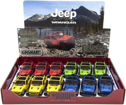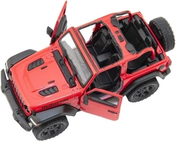 Detaljni model vozila Jeep Wrangler 2018 ponuja odprta vrata in vzvratno poteg, kar zagotavlja ure zabave.