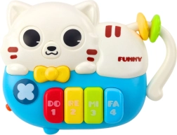 Mini klavir v obliki ljubke mačke je idealna igrača za najmlajše otroke, ki združuje izobraževalno in zabavno funkcijo. Namenjen je otrokom že od 18 mesecev dalje in predstavlja odličen uvod v svet zvokov, ritma in koordinacije gibalno-slušnega. Barvit dizajn, prijazen videz in enostavna uporaba gumbov spodbujajo aktivno raziskovanje zvokov in svetlobe.