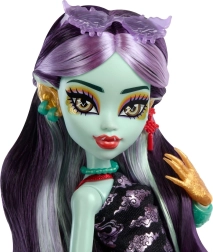 Jinafire Long je pripravljena na vsako avanturo z nahrbtnikom, sončnimi očali, telefonom in »pitnim jogurtom«, ki so prav tako del pakiranja. Odkrijte celotno kolekcijo Monster High in se potopite v svet mode in fantastičnih zgodb. Prodaja se posamezno glede na razpoložljivost.