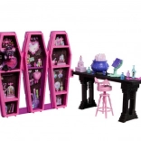 Komplet Monster High Draculaura - Skrivna soba eliksirjev je sanje vsake čarovnice! Poln je presenečenj in preobrazb, kot na primer knjige urokov z izginjajočo stranjo ali kotla, ki menja barve. Med dodatki najdete tudi netopirja po imenu Grof Bajeqsny.
