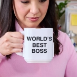 - Ustvarite zabavo tako, da postavite figurke in dodatke v različne prizore v stilizirani skodelici z napisom "World's Best Boss".