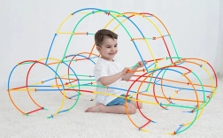 Ta ustvarjalni komplet združuje lahke prožne cevčice in več vrst konektorjev, s katerimi zlahka sestavite preproste ali napredne modele. Deli svetijo v temi, zato se vsaka zgradba po ugašanju luči spremeni v impresiven svetlobni šov. Hiter sistem pripenjanja podpira samostojnost otrok in tekoče učenje skozi igro.