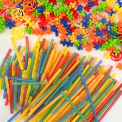 Barvne cevčice in konektorji po osvetlitvi žarijo v temi, zato vsaka zgradba oživi in motivira otroke k nadaljnjemu ustvarjanju.