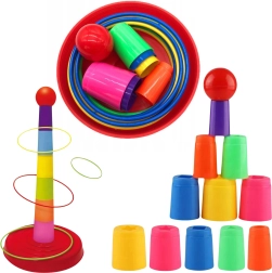 Uživajte v nepozabnih trenutkih, polnih čustev in spretnostnih izzivov s to zabavno igro. Komplet je sestavljen iz dveh izrazitih, barvitih stebrov in številnih obročev različnih velikosti, kar zagotavlja ure privlačne zabave.