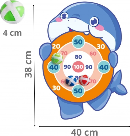 Potopite se v svet vznemirljive zabave s tarčo v obliki prisrčnega morskega psa znamke Woopie! Ta barvita in vesela tarča, idealna za obešanje na steno, zagotavlja ure aktivne zabave ter hkrati razvija natančnost in koordinacijo vašega otroka. V kompletu so mehke žogice, ki se zaradi ježkov zlahka pritrdijo na tarčo, kar olajša štetje točk.