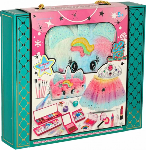 Odkrijte svet ustvarjalnosti s tem privlačnim kompletom kozmetike in dodatkov za otroke. Vsebuje 22 različnih elementov, ki zagotavljajo neskončno zabavo in možnost eksperimentiranja z barvami in teksturami.