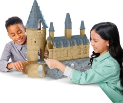 Grad ima podrobne arhitekturne elemente in živahne barve, ki poudarjajo čarobnost sveta Harryja Potterja.