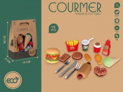 Komplet za kosilo PLEJO - Hamburger je interaktivni plastični set, ki otrokom omogoča igrivo izmišljevanje in pripravo okusnih hamburgerjev s čimer spodbuja njihovo ustvarjalnost in fino motoriko.