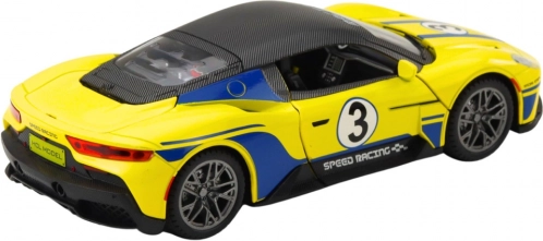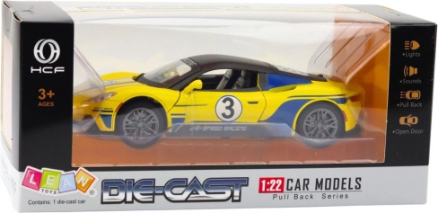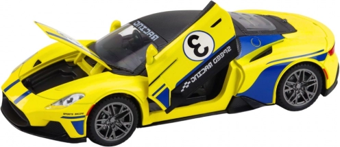 Ta čudovit športni avto je opremljen z svetlobnimi in zvočnimi učinki, ki se aktivirajo z nežnim pritiskom na pokrov motorja, s čimer ponuja realističen občutek avtomobilskih dirk. Zahvaljujoč frikcijskemu pogonu se avto zlahka požene v gibanje, dovolj ga je poriniti naprej.