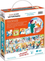 Sestavljanka Kaj počne veterinar je izobraževalni komplet za radovedne predšolske otroke in ljubitelje živali. Vsebuje 60-delno sestavljanko, 32 dodatnih sličic in izobraževalni plakat, pripravljen v sodelovanju z veterinarko.
