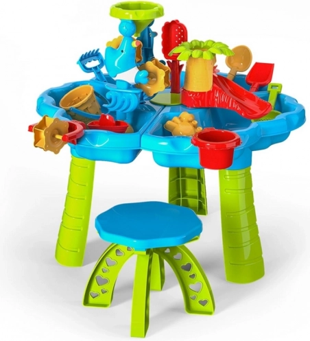 Komplet 3v1 znamke Woopie ponuja popolno zabavo za otroke, ki radi eksperimentirajo, ustvarjajo in aktivno preživljajo čas na prostem. Zahvaljujoč številnim dodatkom ter funkcionalni mizici s stolčkom lahko otroci gradijo peščene gradove, prelivajo vodo in senzorično odkrivajo svet.