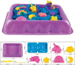 - kinetični pesek, plastična mizica/pladenj, komplet modelčkov (samorogi, mavrice, zvezde, oblački itd.), orodja za modeliranje