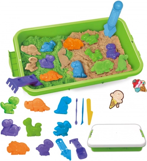 - 1,5 kg kinetičnega peska v več barvah za bogato ustvarjanje